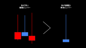 ピンバー単体ではなく複数ピンバーが出た場合。